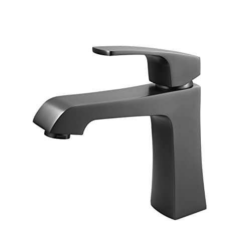 SOLVEX Grifo de Lavabo Baño,Latón Gris Mate Grifo Monomando Cuadrado Sobre Encimera Lavabo,Diseño Elegante Estilo de Moderno,Válvula de Cerámica,Grifería Mezclador,SP-12014-G