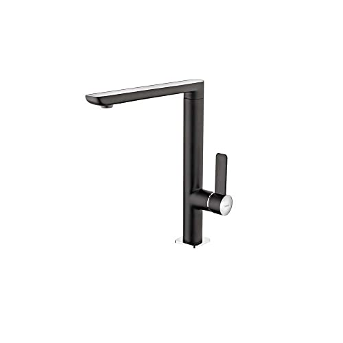CECIPA Grifo de Cocina Negro en Acero Inoxidable Grifo del Giratorio de 360° para Fregadero Grifo Monomando del Cocina Sin Plomo