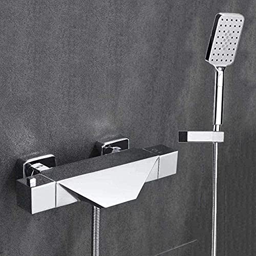 RSDSA Grifo De Bañera Termostato Cascada Soporte De Pared Con Ducha De Mano Para Baño Ducha De Baño, Grifo Mezclador, Bañeras Grifos Grifo Bañera Con Ducha Cromada,Plata