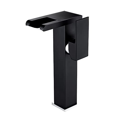 ZYCDP Grifo Lavabo Baño Cascada, Grifo para Lavabo con 3 Cambios de Color LED, Griferia Agua Fría y Agua Caliente, Grifos de Lavabo Cascada Mezclador Monomando, negro, Alto