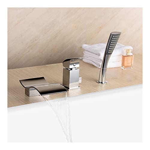 Grifo de bañera Cascada, Grifo de llenado de bañera con ducha de mano Grifo mezclador de baño Grifo de bañera de latón Monomando Grifo de bañera y ducha de 3 orificios, Montado en cubierta,Cromo