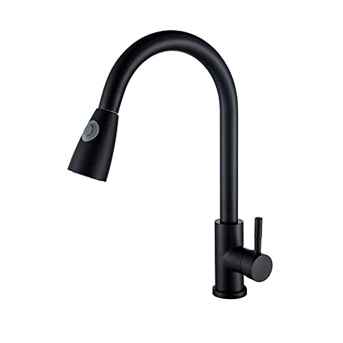 HOMELODY Grifo de Cocina Extraíble 360° Giratorio Grifo de Fregadero Negro con Manguera Silicona de Grado Alimenticio Grifo Monomando Fregadero de Latón para Agua Fría y Caliente