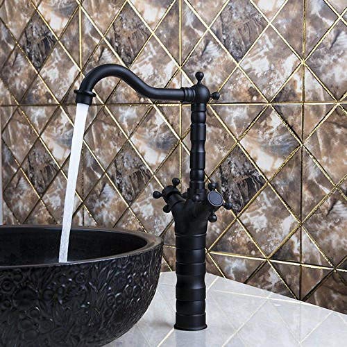 Chongyang Grifos Dobles Altos Giratorios 360 Lavabo De Bronce Negro Fregadero Fregadero De La Cocina Grifo Del Recipiente Del Lavabo Grifo Mezclador