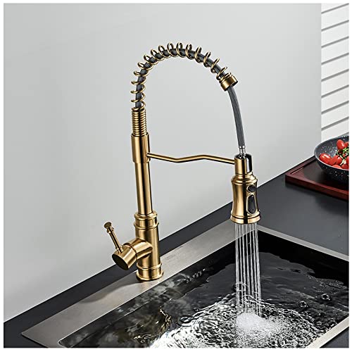 Grifos Cocina Fregadero Monomando, Grifo Cocina Extraible,FuncióN Triple Grifo Fregadero Con Muelle En Espiral,Grifo De Cocina Fregadero ExtraíBle,Grifo Cocina Abatible 360 °,LatóN,Brushed gold