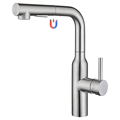 Auralum Grifo Cocina Extraíble con 2 Funciones Caño, 360º Grifo Cocina con Caño Alto, Grifos Cocina Fregadero Monomando Agua Frío y Calor Regulable, Acero Inoxidable