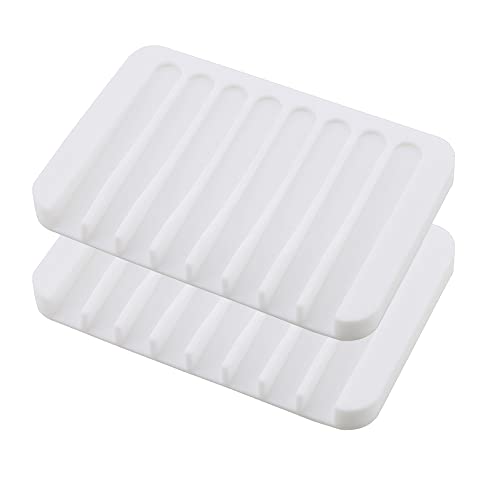 XHNFCU 2 Piezas Jabonera Escurre Jabón de Silicona Mantiene Secas Las Pastillas de Jabón Jabonera Antideslizante para Baño, Ducha, Cocina, Jabón, Esponja(Blanco)