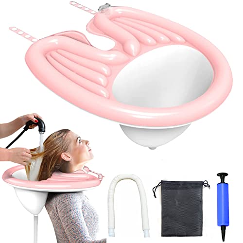 AVCXEC Lavacabeza Inflable Portátil, Lavacabeza Móvil, Lavacabeza Plegable con Bomba de Aire, Bolsa de Almacenaje y Drenaje para Salón, Niños, Ancianos, Mujeres Embarazadas, Rosa