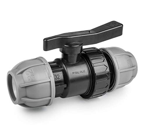 BFG Válvula de bola MDPE PE 32 mm, manguera, ajuste de compresión, resistencia de rango de hasta 45 °C, presión de 16 bar a 20 °C, solo para sistemas de agua fría, para piscinas, estanques, acuarios