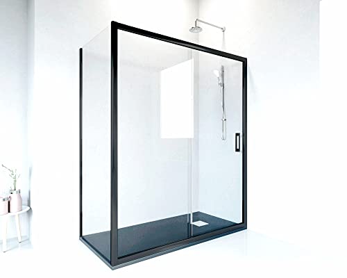 Mampara de ducha angular 1 corredera + 1 fijo + lateral fijo derecha - sin perfilería inferior - Cristal transparente templado 6mm - Negro Mate - Ancho adaptable 115-120 x 67-70 cm - Alto 195 cm
