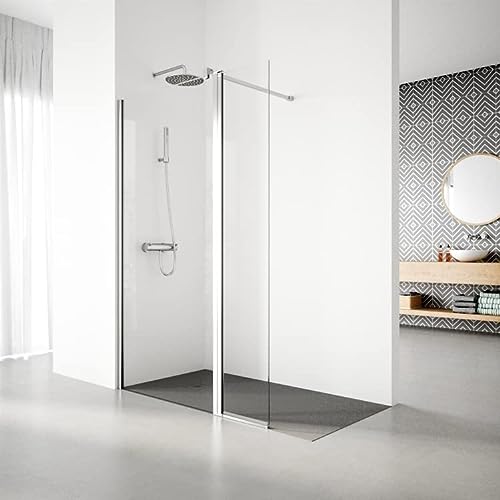 Mampara de Ducha 8mm Frontal Panal Fijo 80 cm con Panel Abatible de 40 CM y barra de soporte extensible 70-120cm vidrio antical de 8 mm, 80x40x200 CM