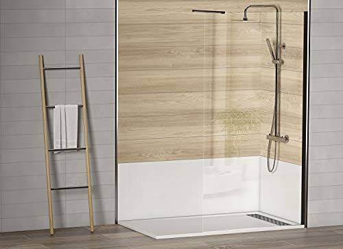 Mampara de Ducha Fijo Frontal | Panel Pantalla Fijo Ducha de Vidrio Templado de 8mm | Tratamiento Antical y Altura de 195cm | Marco Negro Mate 70cm