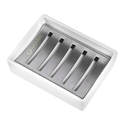 OneAmg Jabonera, jabonera de cerámica de jabón de Acero Inoxidable Sus 304 jabonera Doble jabonera sin taladrar para Ducha, baño, Cocina, Mantenga Las Barras de jabón secas y limpias, fácil Limpieza