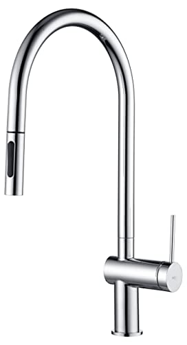 Auralum Grifo de Cocina con Giro de 360°, Caño Alto, Diseño Elegante Grifos de Fregadero Monomando en Latón y Cromado para Agua Caliente y Fría