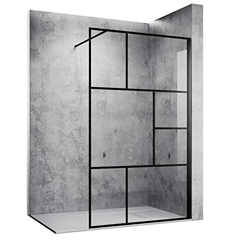 SONNI Mampara de ducha de 120 x 200 cm Walk en negro, diseño de cristal de seguridad nano de 8 mm, mampara de ducha con estabilizador montado en platos de ducha o suelo