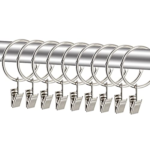 Anillos de Cortina, 20 Piezas de Anillos de Cortina de 38 mm con Clips, Ganchos de Cortina de Acero Inoxidable para Colgar Cortinas, Cortinas de Ducha de Baño, Ventanas (Plata)