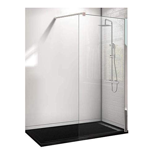Conjunto de 3 PIEZAS: Plato de ducha de resina 180x70 Negro+ Panel fijo de cristal 90 cm+ Conjunto de ducha termostático