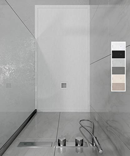 Shower Online Plato de ducha Resina PLES - 80x210 - Textura Pizarra - Antideslizante - Todas las medidas disponibles - Incluye Rejilla Color y Sifón - Blanco RAL 9003