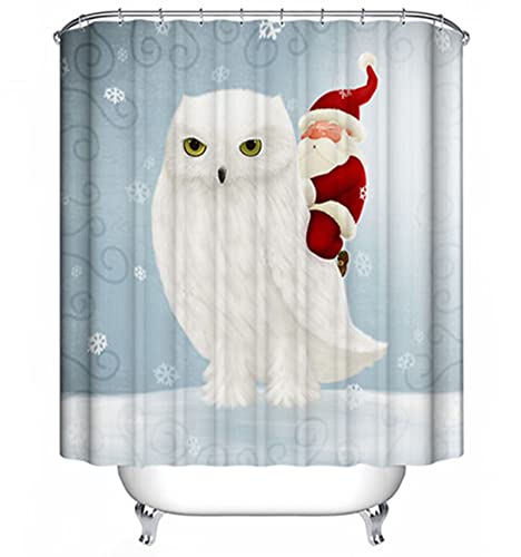 Cortinas De Baño para Plato Ducha Cortinas De Ducha Búho Papá Noel Cortina De Baño Antimoho Cortinas Ducha Rusticas Polyester Azul Ojales De Acero Inoxidable Y 12 Ganchos, 90X180Cm