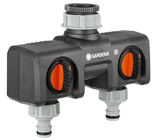 Gardena Distribuidor 2 vías para el Funcionamiento de 2 aparatos de conexión. Regulación y Cierre del caudal de Agua, Negro/Naranja, 10 X 10 X 5 cm