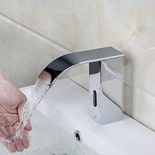 Grifos Lavabos Grifo Lavabo Cuarto De Baño Ac/Dc Batería Ahorro De Energía Agua Fría Cascada Automático Sensor Táctil De La Mano Faucet Cascada Fregadero Del Baño Faucet Cromo