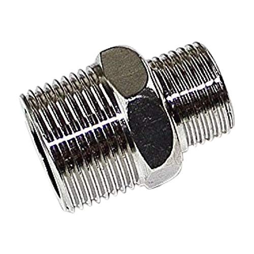 1/2” Pezón doble de latón cromado, 2x rosca macho, conector, toma de pezón, pezón de transición, pezón del talón, hexágono, accesorio, MM