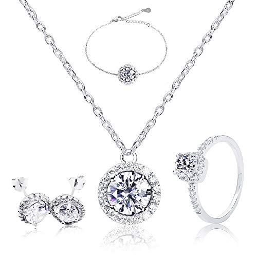 Conjunto de joyas y collar de pendientes, anillo infinito, plata de ley 925, circonita cúbica, sin fin, símbolo de anillo encantador para mujer, fiesta, boda, regalo con paquete, Placcato plateado