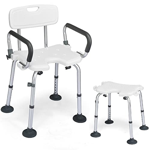 Joparri Silla Ducha Mayores con Brazos und Respaldo Extraíble, Ancianos Ducha Antideslizante 41 – 53,5 cm hasta 136 kg para Personas Mayores, Embarazadas