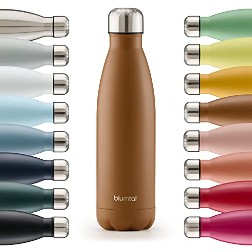 Blumtal Botella de Agua de Acero Inoxidable - Botella Témica sin BPA, Termo con pared Doble Aislamiento, Marrón, 750ml