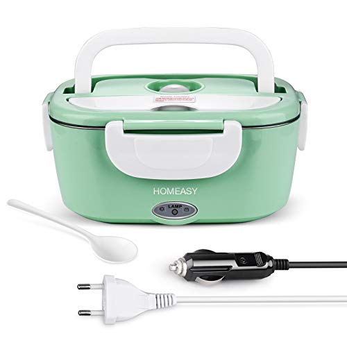 homeasy Fiambrera Eléctrica 2 en 1, Calentadores Eléctricos Portátiles para Coche y Trabajo 220V & 12V, 1.5L Termo para Comida de Acero Inoxidable, Pefecto para el Hogar y Oficina(Verde Pastel)
