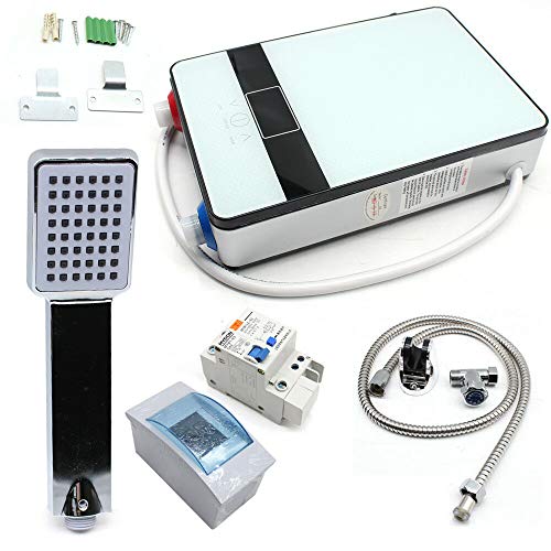 Jiawu Calentador de Agua Instantáneo sin Tanque, Calentador de Agua Eléctrico, Mini Calentador de Agua Instantáneo Eléctrico para el Baño de la Cocina del Hogar, Protección contra(Blanco)