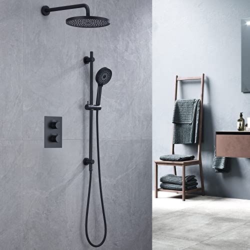 DUTRIX Sistema de ducha con termostato traje de ducha negro con termostato ducha mate negra traje de ducha de armadura negra traje de ducha oculto (Ducha negra 2)