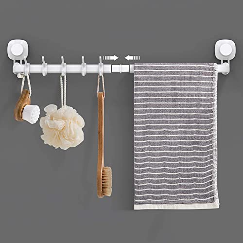 Luxear Toallero con Ventosa, Soporte Ajustable, sin taladros y Soporte para Toallas de baño extraíble con 5 Ganchos deslizantes, Colgador de Pared para Cuarto de Ducha, Cocina, Puerta, Color Blanco