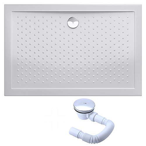 doporro Plato de ducha diseño Lucia04 70x80x4 plano de acrílico en blanco y perfil Antideslizante incl. válvula de desagüe adecuada para instalación a nivel del suelo y conexiones-DIN